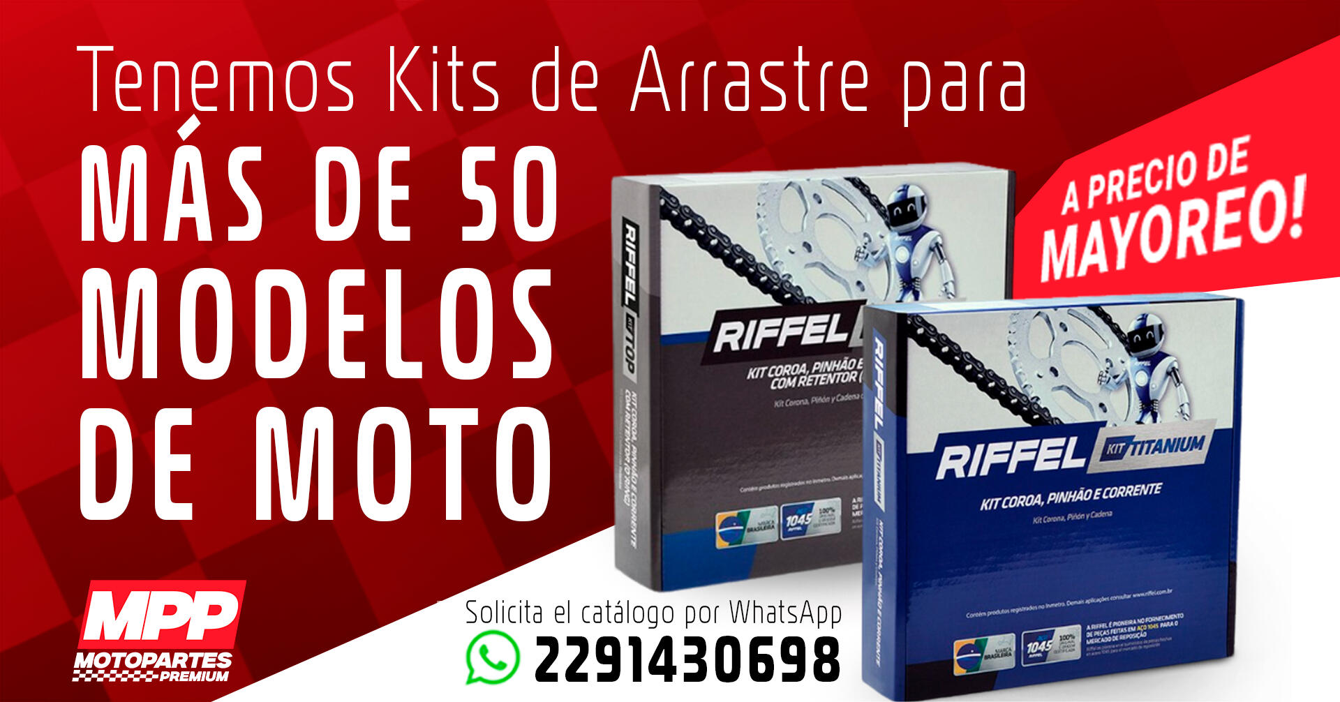 Kits de arrastre Riffel para más de 50 modelos de moto. Envío a todo México.